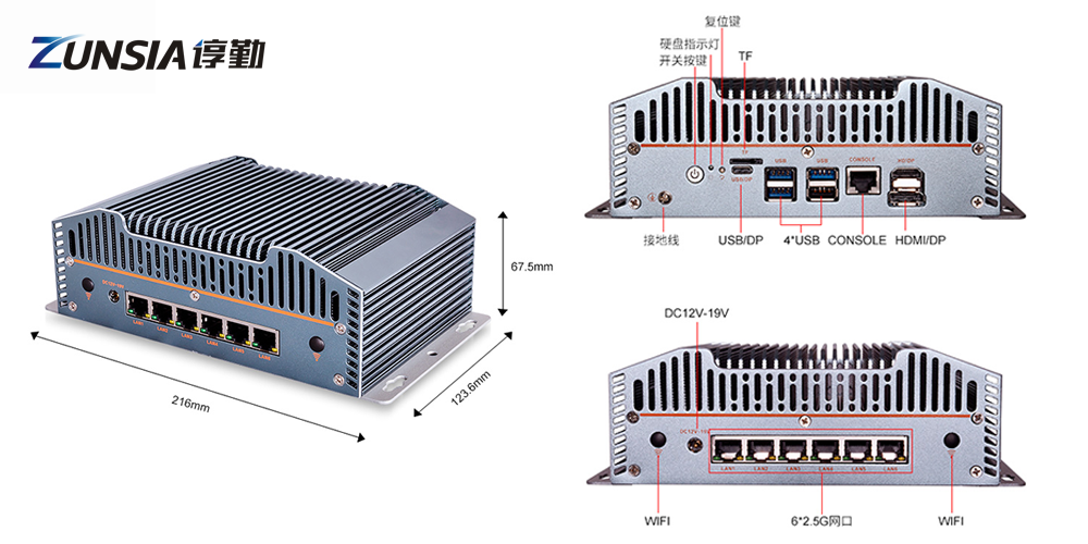 顯示方面有HDMI2.0、DP、Type-C(USB3.0+DP);帶有豐富的外接接口, 6網(wǎng)口、TPM2.0、M-Key 2280 SSD、STAT3.0、RS232、USB2/3.0等;滿足與其他外接控制器、工業(yè)攝像頭、稱重傳感器等設(shè)備的互聯(lián);DC12-19V的電源供電,支持Windows和Linux操作系統(tǒng),可在-20℃至+60℃工作,鋁合金的外殼讓其有良好的散熱以及防塵抗擾的能力。